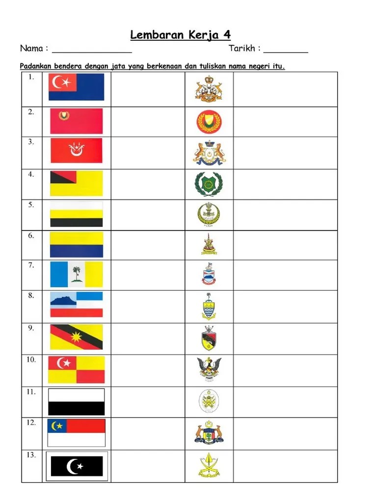 Tedapat 13 buah negeri dan 1 wilayah persekutuan . Bendera negeri pulau pinang · 4. Bendera merah berlambangkan jata negeri kedah di bahagian atas. Apakah maksud putih dalam bendera?